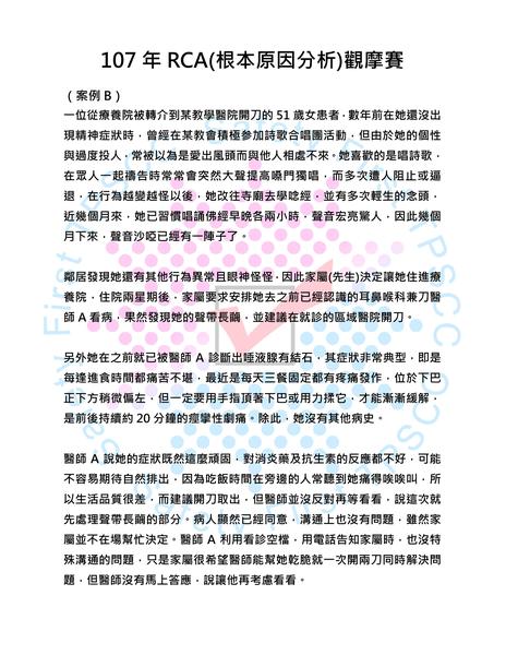 ~第二波大公開~107年RCA(根本原因分析)觀摩賽 案例B