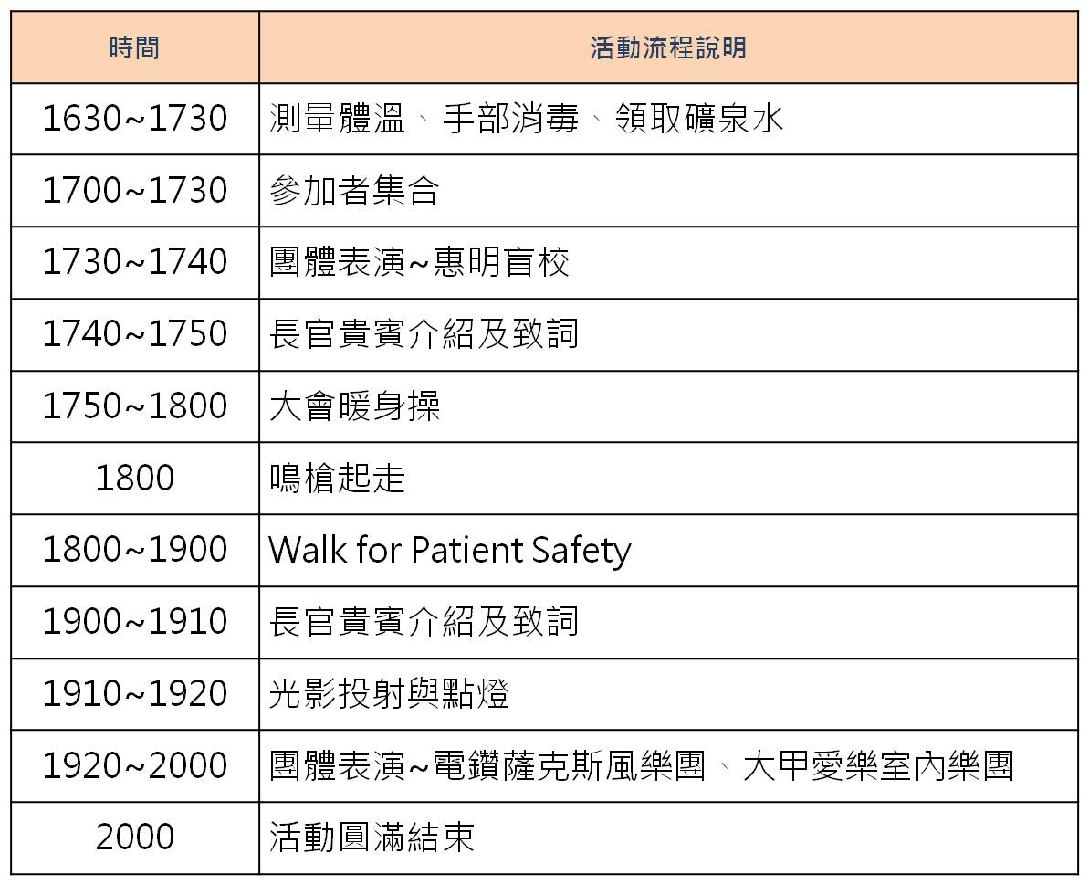 - 公益健走活動:期藉由市區健走、標語傳達等方式,進而讓民眾意識到病人安全照顧的重要性。