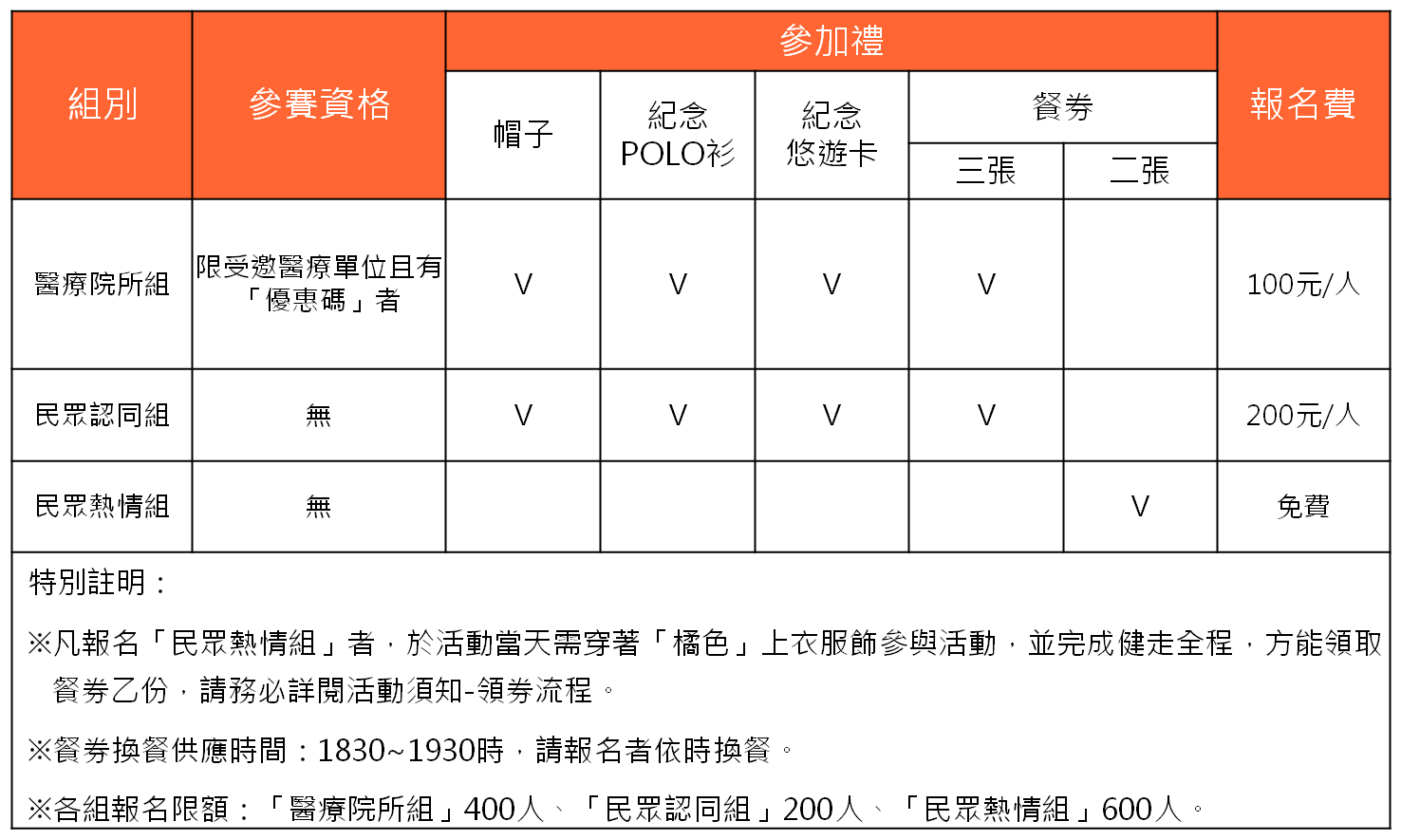 - 醫療院所組:100元/人(限額500名)