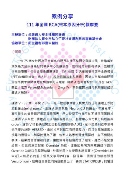 RCA案例分享 – 111年全國RCA(根本原因分析)觀摩賽