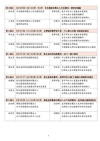活動資訊及場次表——2023年美國經典患者安全紀錄片全國巡迴演出暨放映後座談會