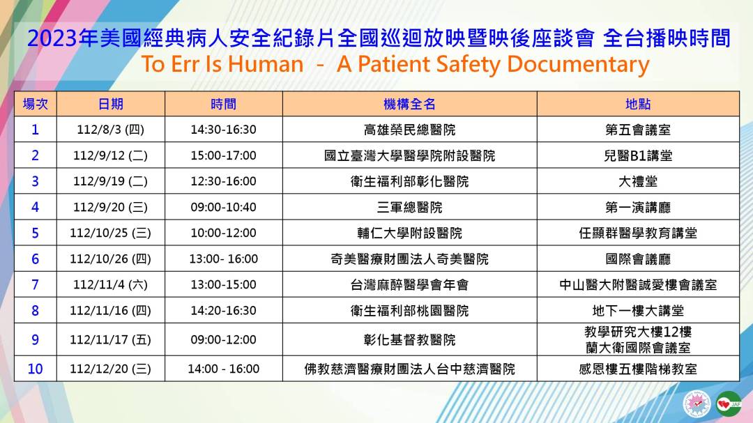 2023年美國經典病人安全紀錄片全國巡迴放映暨映後座談會